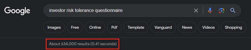In fact, a quick Google Search for “investor risk tolerance questionnaire” gives us about 634,000 results.