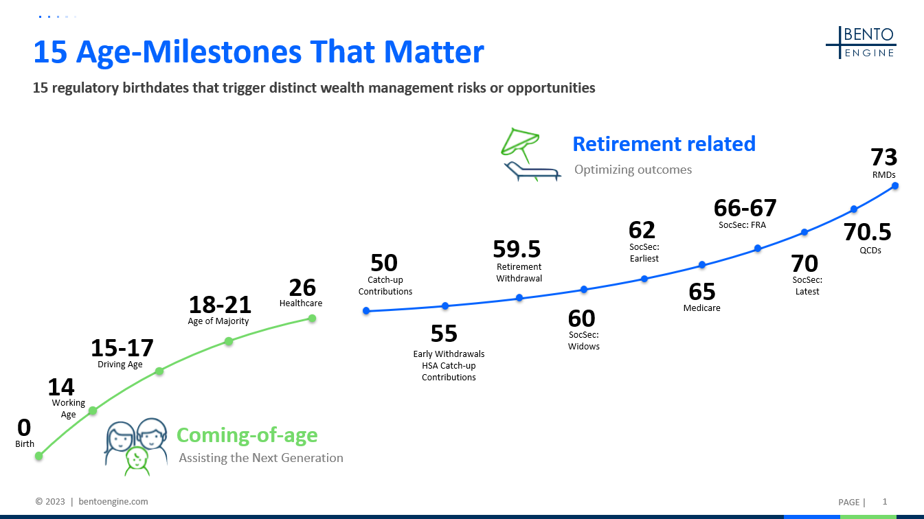 Again, referring to the image above, you can see there are 15 age-related financial planning opportunities, among many other possibilities.