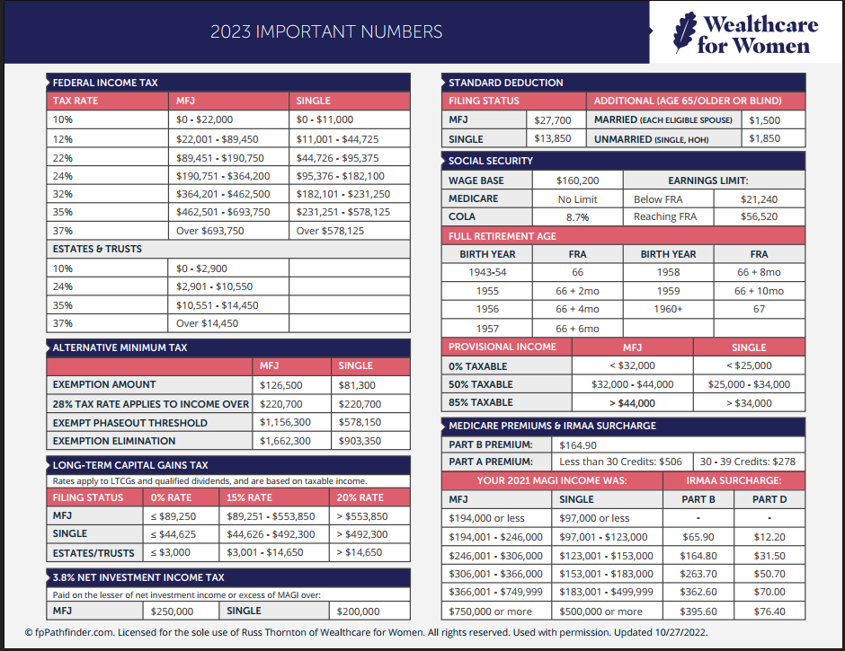 You might find this updated 2023 “Important Numbers” guide helpful as you think about your income, savings, Social Security, and more in 2023. If you’d like to discuss any of this, please get in touch.