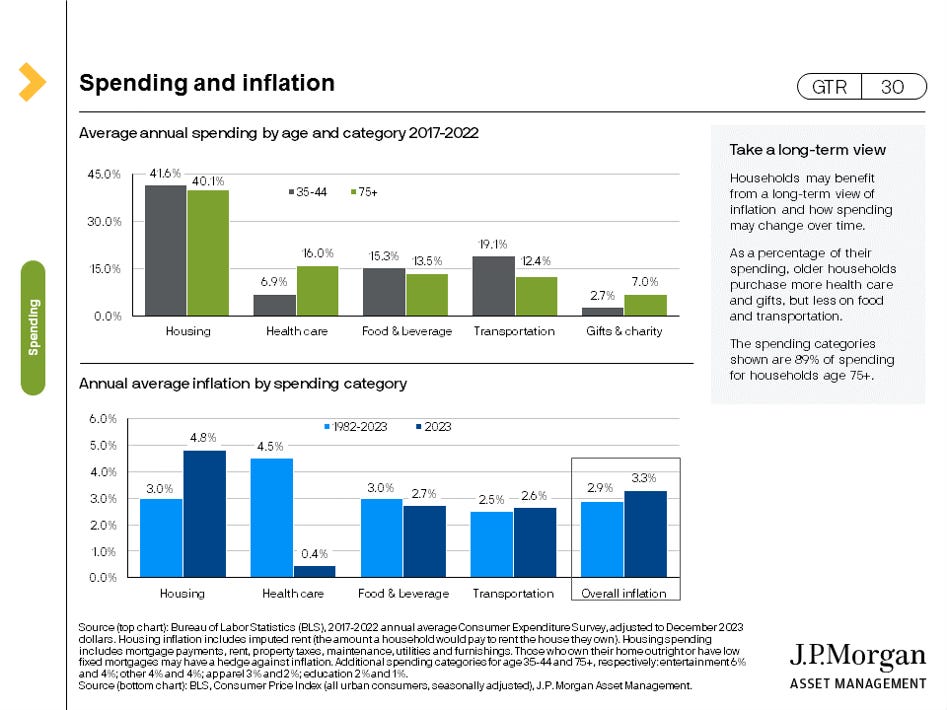 Here’s some average spending figures based on age as well as how inflation impacts different spending categories over time.
