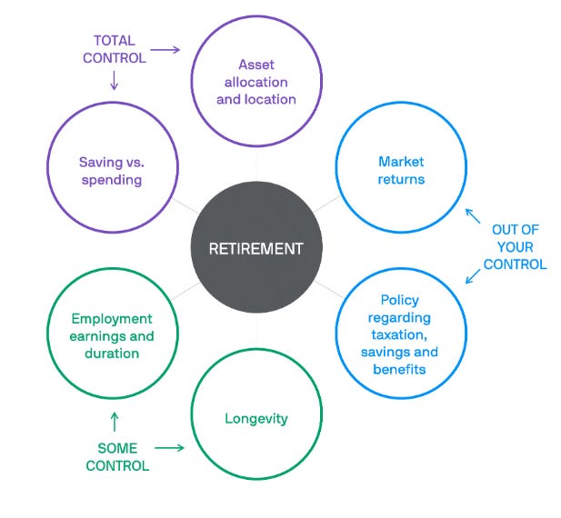 Perry includes both things you can and cannot control in his list. As does the image above from JP Morgan.
