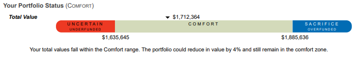 In the illustration above, this client's plan is currently at 82% confidence. Or pretty much in the middle of their personal comfort zone.