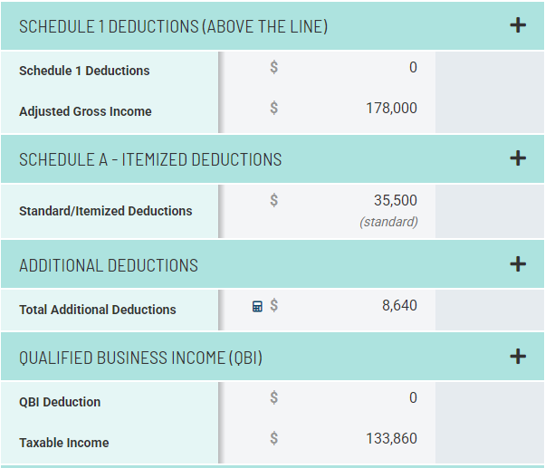 After their standard deduction and the additional deduction they get as seniors, their taxable income drops to roughly $134,000.