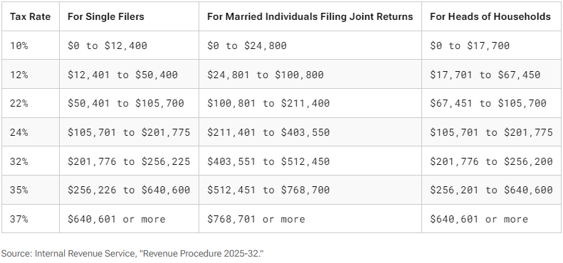 Some of it lands in the 10% bracket. A good portion lands in the 12% bracket. And only a slice reaches the 22% bracket. None of it touches 24% or higher.