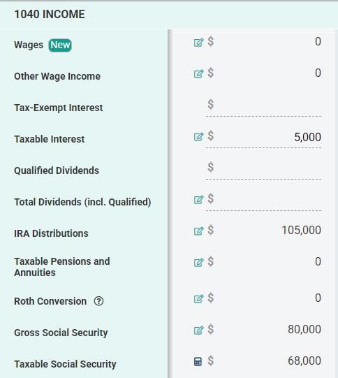 About $68,000 of their $80,000 in Social Security shows up on their tax return. This is the 85% maximum of Social Security income that can be taxed.